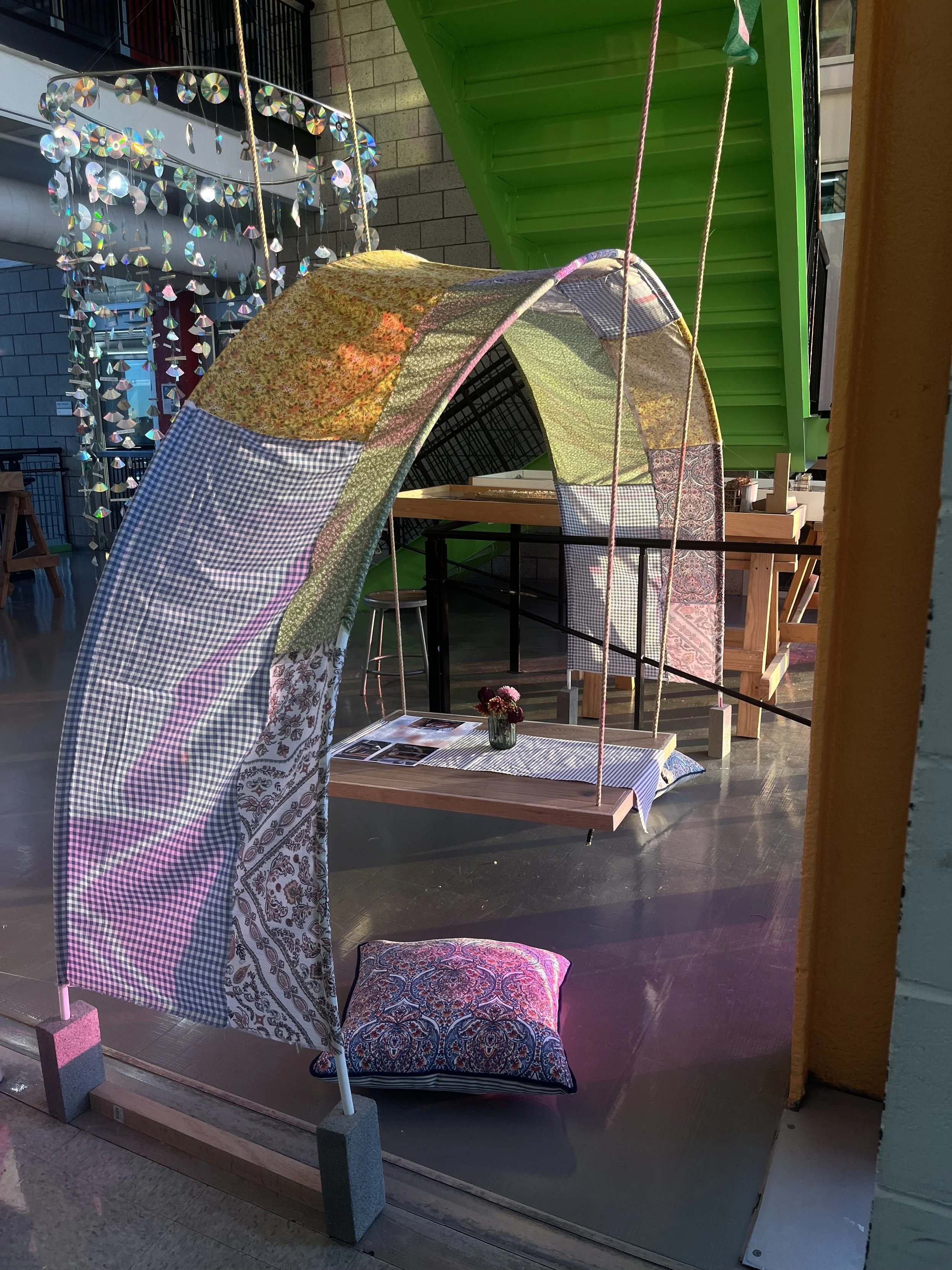 The Nook, located on the 6th floor of HCAD, provides a unique and welcoming space for users of the building to relax, socialize, and enjoy meals in a comfortable, informal setting. It serves as a perfect retreat from the hustle and bustle of studio work, offering a tranquil environment where individuals can unwind or gather with colleagues and friends. The design of the space blends artistic flair with practical functionality, creating a perfect balance of form and comfort.